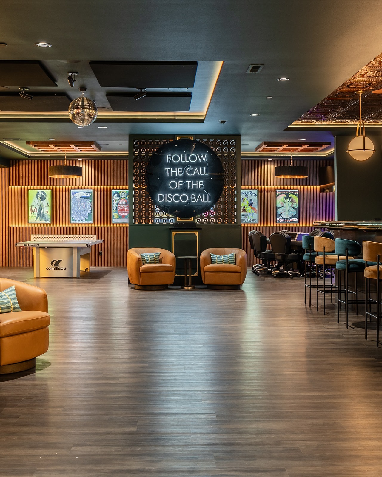 The downstairs, classy 2,400-square-foot vintage speakeasy offers your group exclusive access to a full bar, dance floor, karaoke, pool table, shuffleboard, poker table, ping-pong, and air hockey—an all-in-one arcade and cocktail lounge, perfect for après-ski nights or post-golf celebrations.